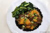 In a creative twist, we often use black rice (instead of white rice), which has a nutty taste and soft texture that complements wonderfully the beans curry and provides a striking color contrast with the golden sauce. As a whole grain, black rice also helps to make this plants-only meal particularly satiating.