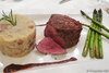 We showcase the outstanding taste and nutrition of bison, prepared in the style of a fine American steakhouse, with a French touch. A thick and lean bison filet is grilled to perfection over wood fire and served with traditional American garlic mashed potatoes and asparagus, as well as a traditional French red wine and peppercorn sauce.